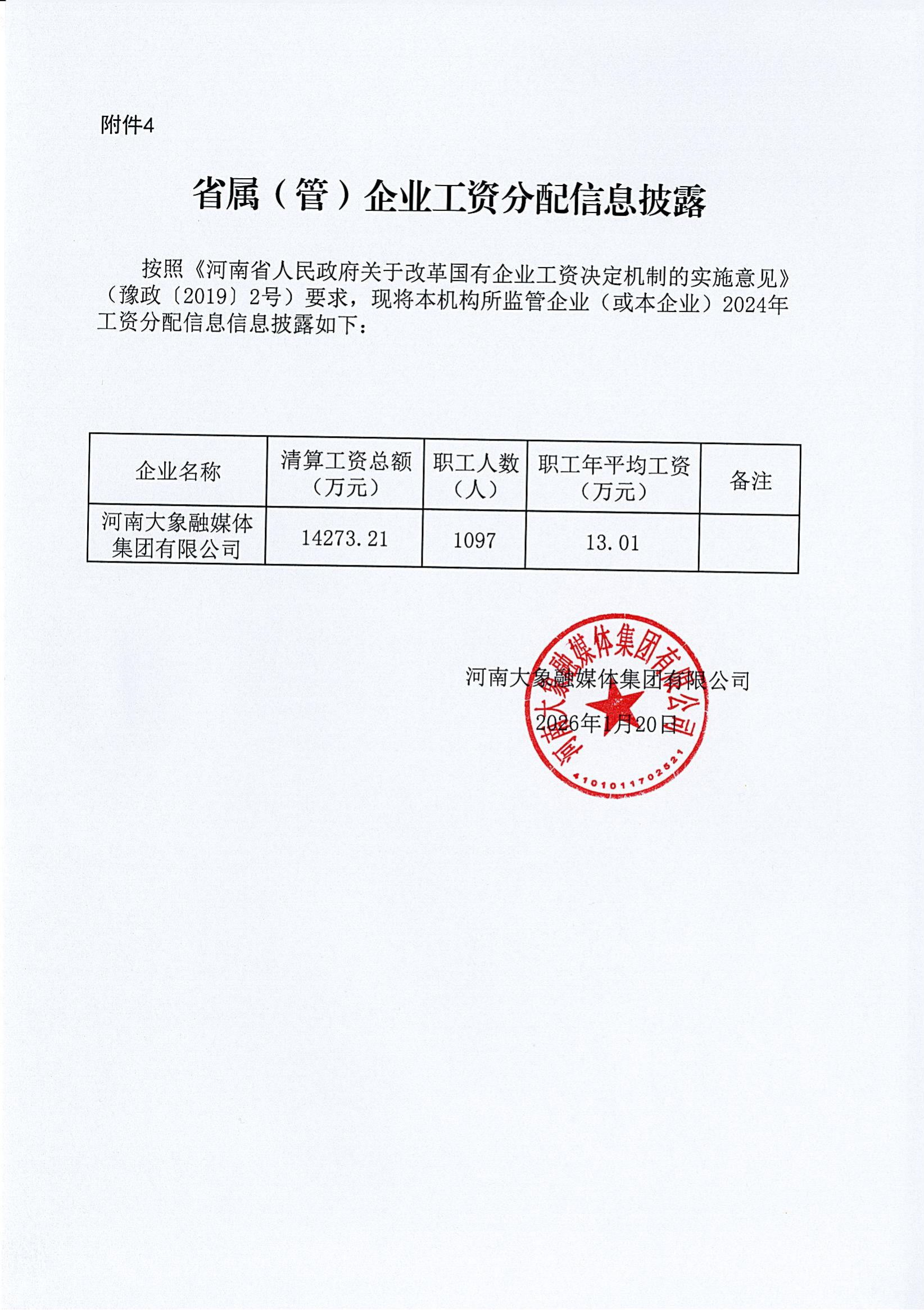 省属(管)企业2024年度工资分配信息披露(河南大象融媒体集团有限公司)