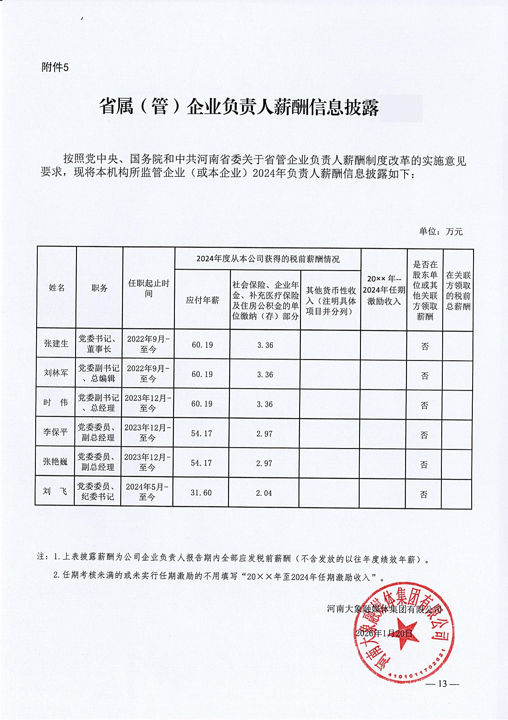 省属(管)企业负责人2024年度薪酬信息披露(河南大象融媒体集团有限公司)
